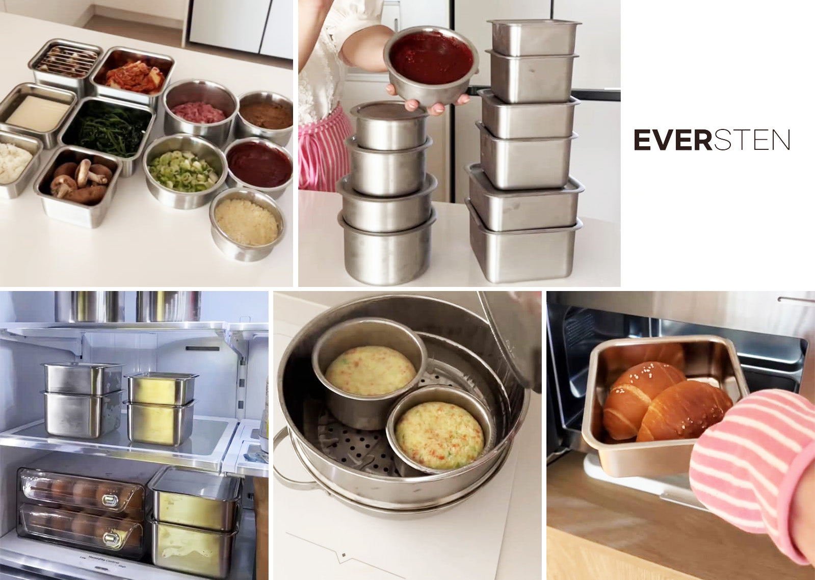 Introducing EVER STEN stainless steel kitchenware, which has recently become popular among moms and chefs. The EVER STEN is a versatile, durable stainless steel container for modern kitchens. 100% made in Korea with POSCO 304 stainless steel, it offers excellent resistance to salts and acids, ensuring safe use with various foods. The curved rim blocks external air, keeping your food fresh for longer, and is perfect for air fryers, ovens and refrigerator/freezer storage.